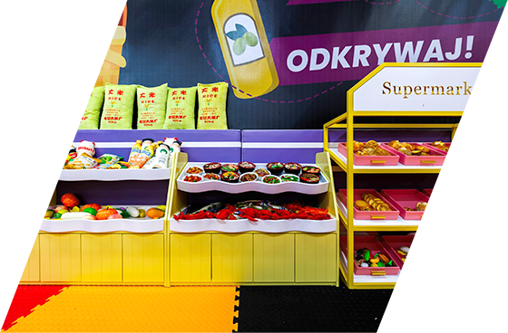 Strefa edukacyjna została zaprojektowana z myślą o najmłodszych dzieciach, które poprzez zabawę uczą się otaczającego je świata. To przestrzeń tematycznych stanowisk do odgrywania ról, rozwijająca wyobraźnię, kreatywność oraz kompetencje społeczne.